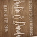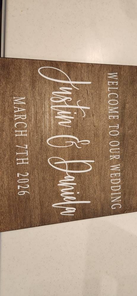 Please keep in mind that stain appearance can vary based on wood grain and saturation for each individual piece. Photos may show different variations of a stain color due to this and other factors such as lighting, where the picture was taken, etc. Please refer to the stain sample in each listing picture for the most accurate stain color. We DO NOT fully stain the back of any sign the way that the full front is stained to keep costs down and a lighter coat is applied to the back as most signs are generally used on an easel, against something that doesn’t show the back, or decorated with flowers or leaves. If you wish to have the back completely finished with stain the same as the front, please message us prior to ordering for pricing.