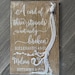 Please keep in mind that stain appearance can vary based on wood grain and saturation for each individual piece. Photos may show different variations of a stain color due to this and other factors such as lighting, where the picture was taken, etc. Please refer to the stain sample in each listing picture for the most accurate stain color. We DO NOT fully stain the back of any sign the way that the full front is stained to keep costs down and a lighter coat is applied to the back as most signs are generally used on an easel, against something that doesn’t show the back, or decorated with flowers or leaves. If you wish to have the back completely finished with stain the same as the front, please message us prior to ordering for pricing.